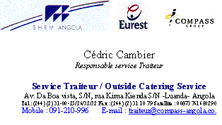 SHRM Angola - EUREST - Compass Group, Luanda, Angola .